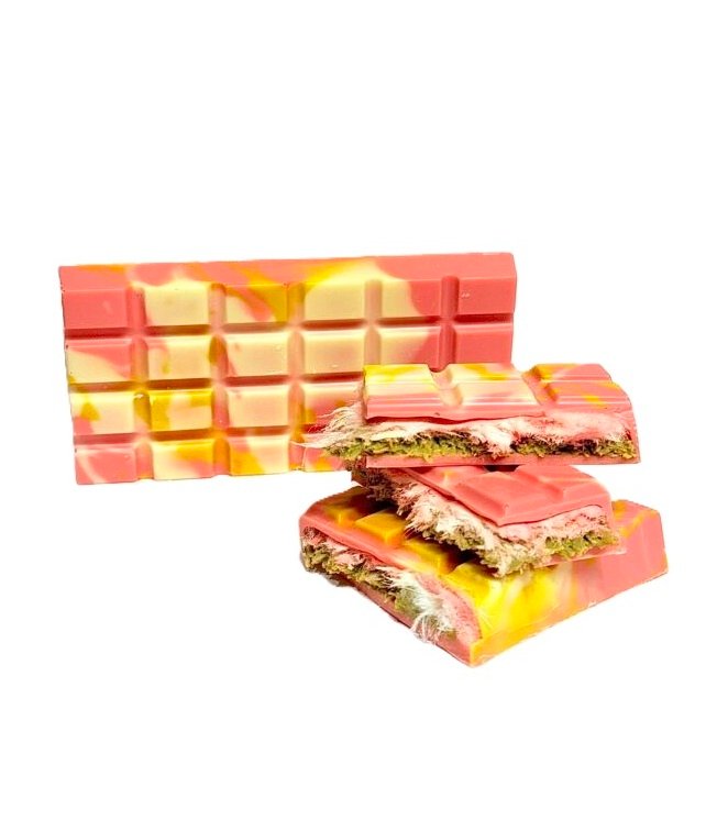 Ingrediënten: suiker, 16% PISTACHENOTEN, cacaoboter, zonnebloemolie, volle MELKpoeder, TARWEbloem,